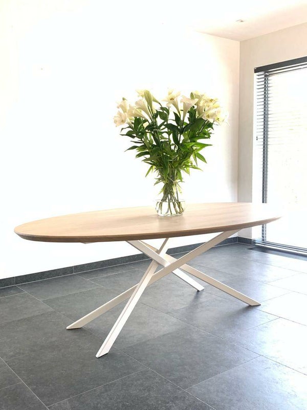 eettafel in massieve eik elips