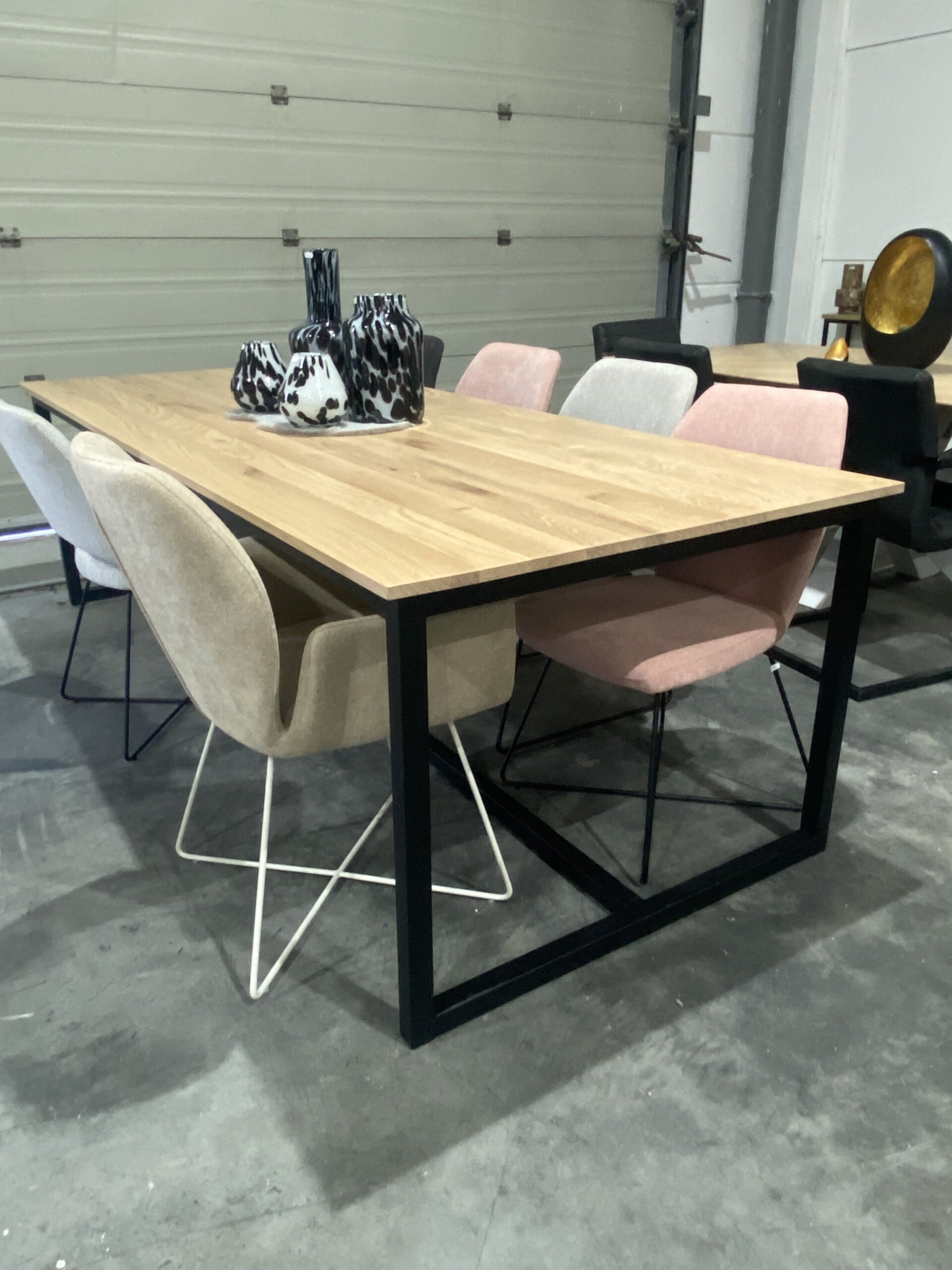Eettafel in massieve eik u onderstel met ligger
